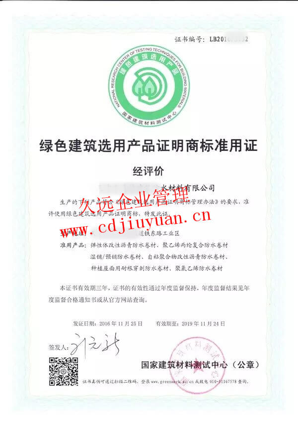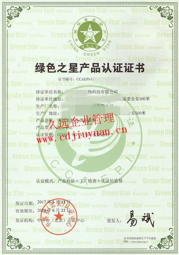 中國環(huán)境標志產(chǎn)品認證證書(十環(huán)認證)
